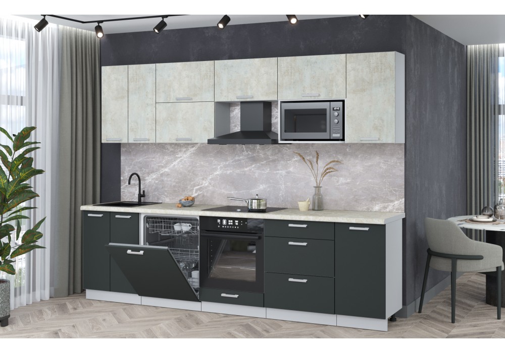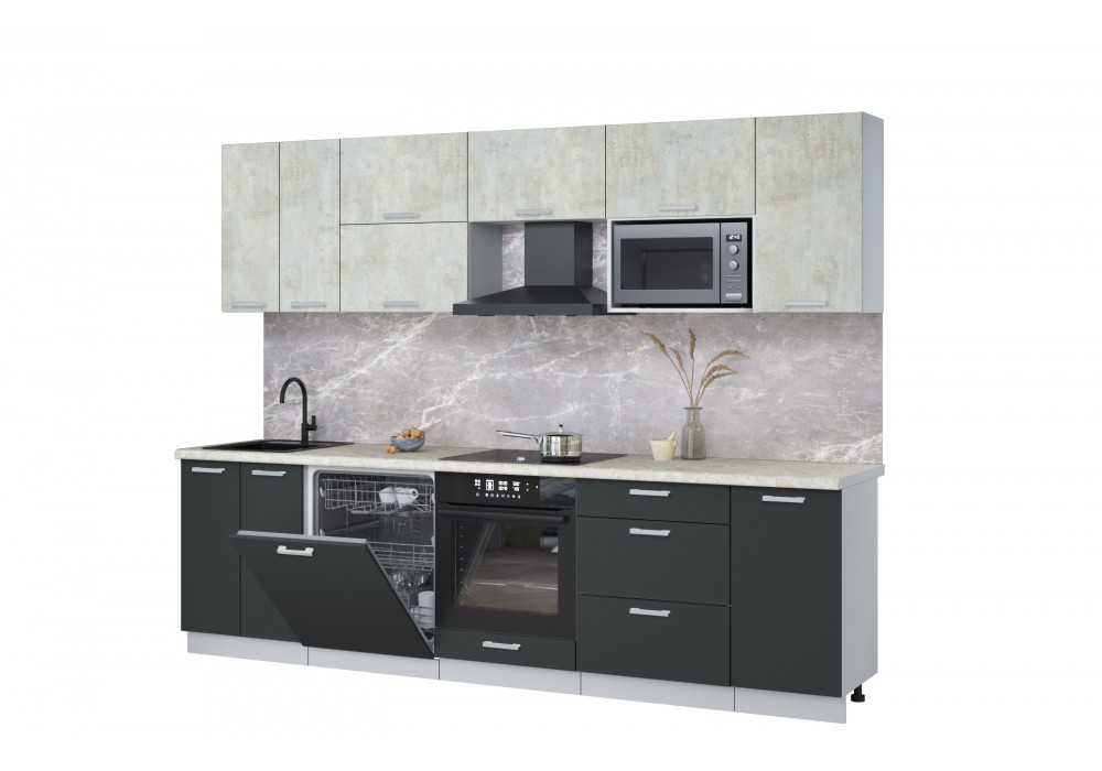 Кухонный гарнитур Мила Лайт 2,8-ПМ2 (Бетон лайт/Антрацит/Опал светлый) фабрика Интерлиния