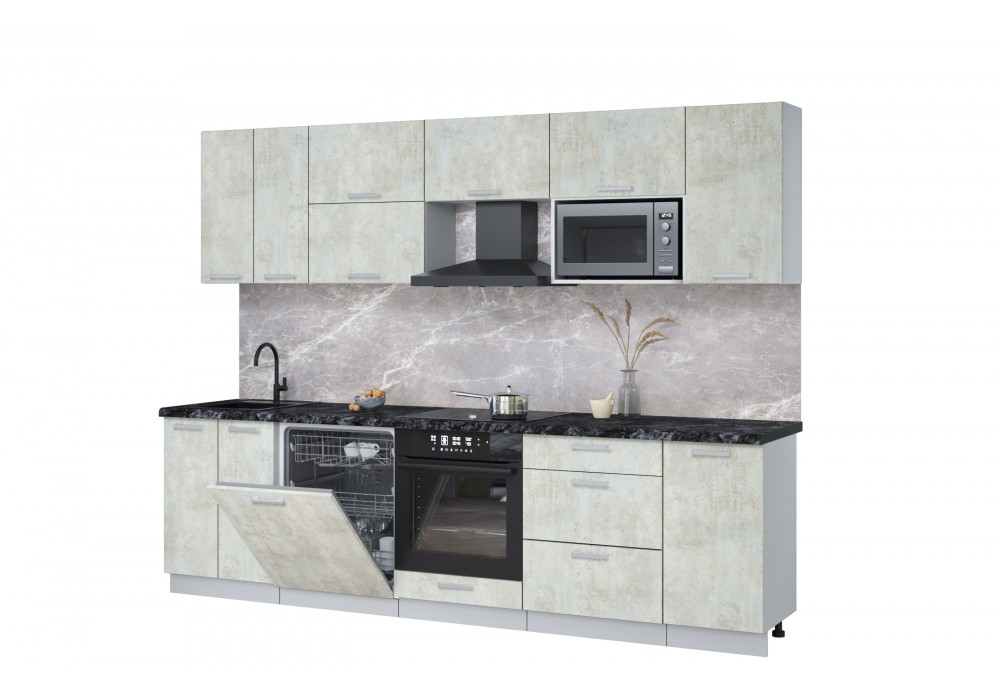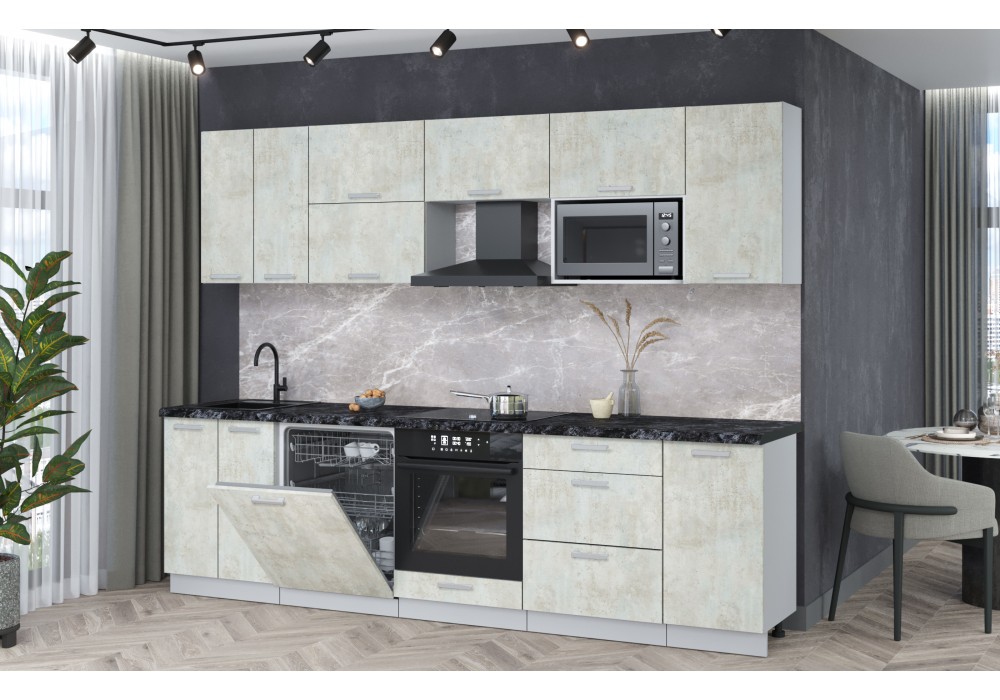 Кухонный гарнитур Мила Лайт 2,8-ПМ2 (Бетон лайт/Бетон лайт/Кастилло темный) фабрика Интерлиния
