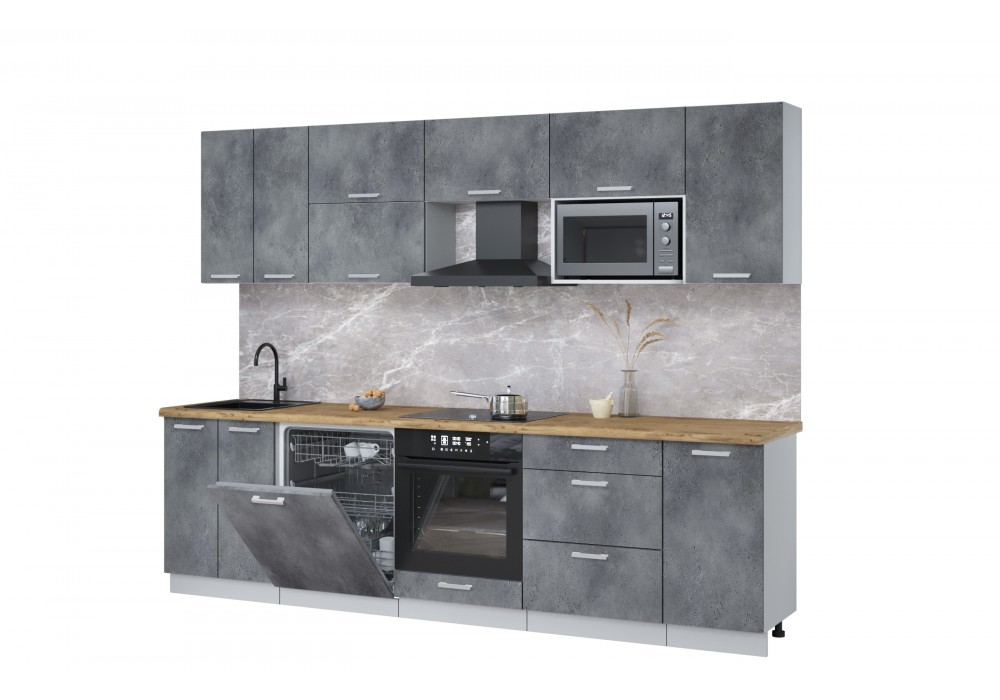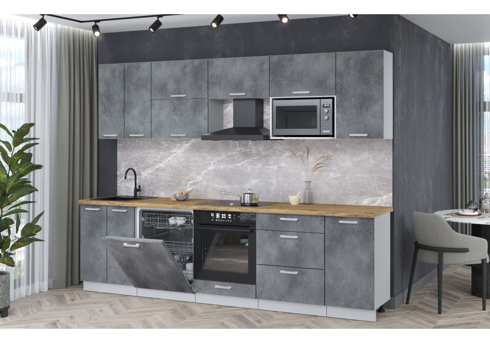Кухонный гарнитур Мила Лайт 2,8-ПМ2 (Бетон портленд/Бетон портленд/Дуб бунратти) фабрика Интерлиния