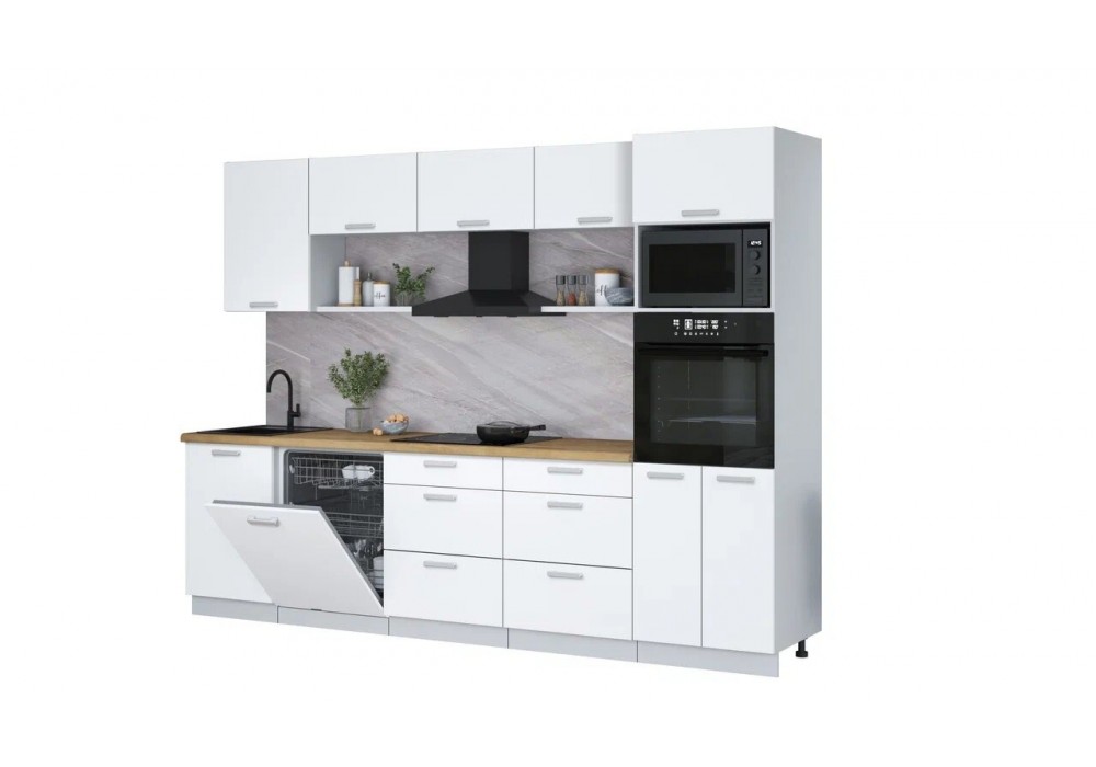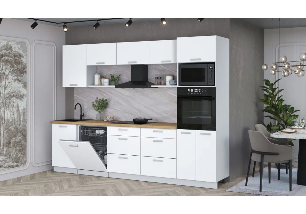 Кухонный гарнитур Мила Лайт 2,9-ПМ1 (Белый Платинум/Белый Платинум/Дуб бунратти) фабрика Интерлиния