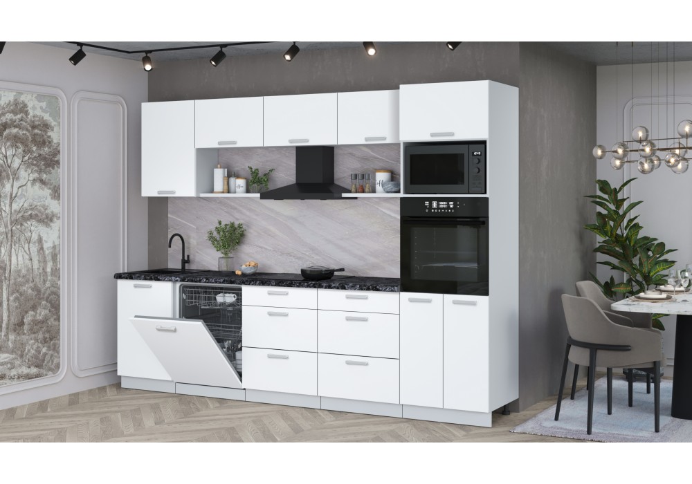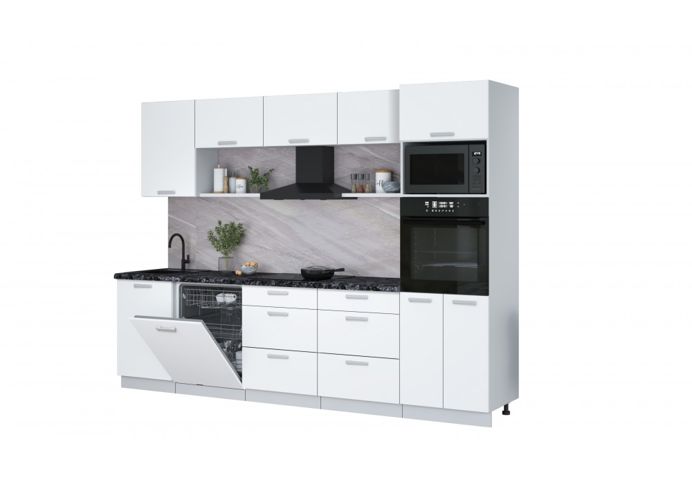 Кухонный гарнитур Мила Лайт 2,9-ПМ1 (Белый Платинум/Белый Платинум/Кастилло темный) фабрика Интерлиния