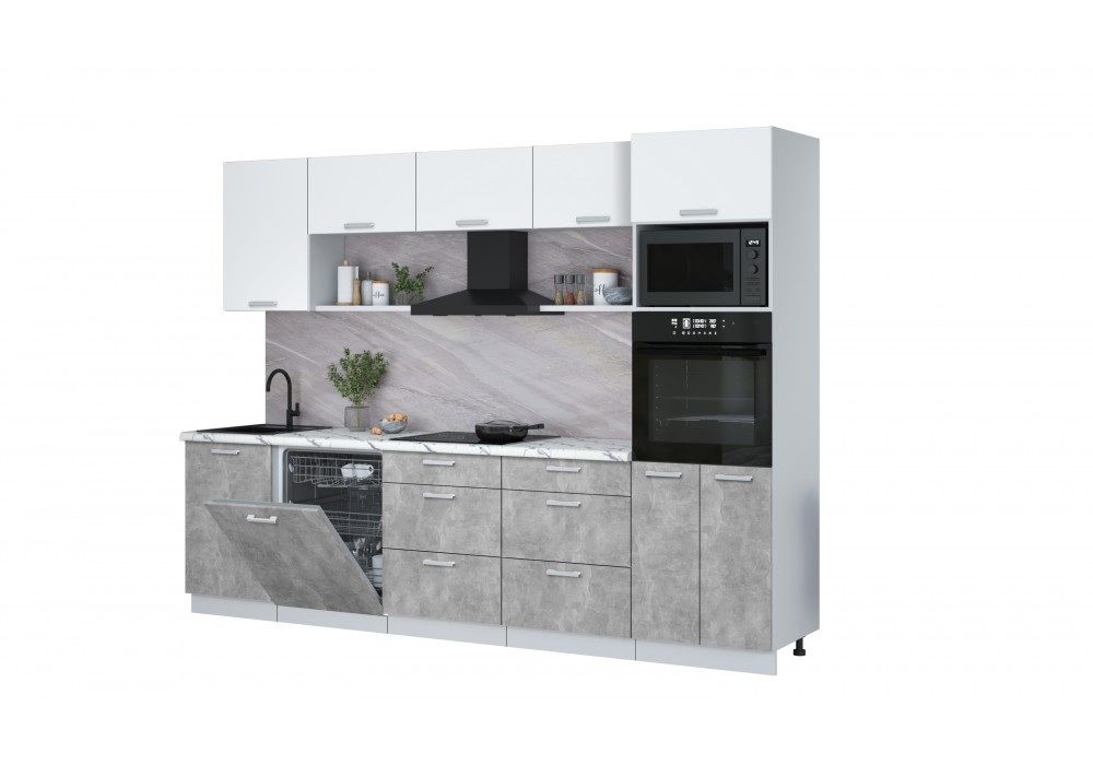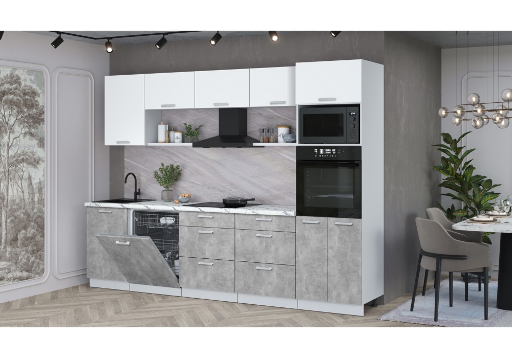 Кухонный гарнитур Мила Лайт 2,9-ПМ1 (Белый Платинум/Бетон/Гранит белый) фабрика Интерлиния