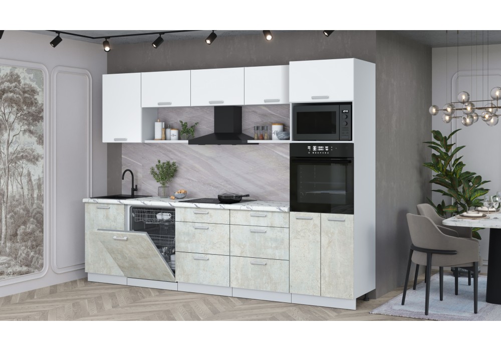 Кухонный гарнитур Мила Лайт 2,9-ПМ1 (Белый Платинум/Бетон лайт/Гранит белый) фабрика Интерлиния