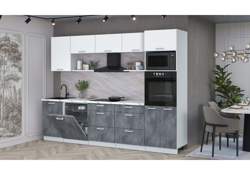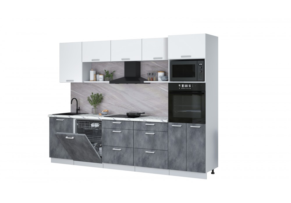 Кухонный гарнитур Мила Лайт 2,9-ПМ1 (Белый Платинум/Бетон портленд/Гранит белый) фабрика Интерлиния