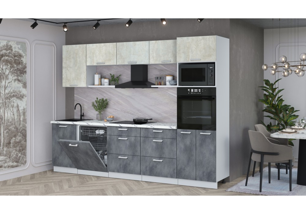 Кухонный гарнитур Мила Лайт 2,9-ПМ1 (Бетон лайт/Бетон портленд/Гранит белый) фабрика Интерлиния