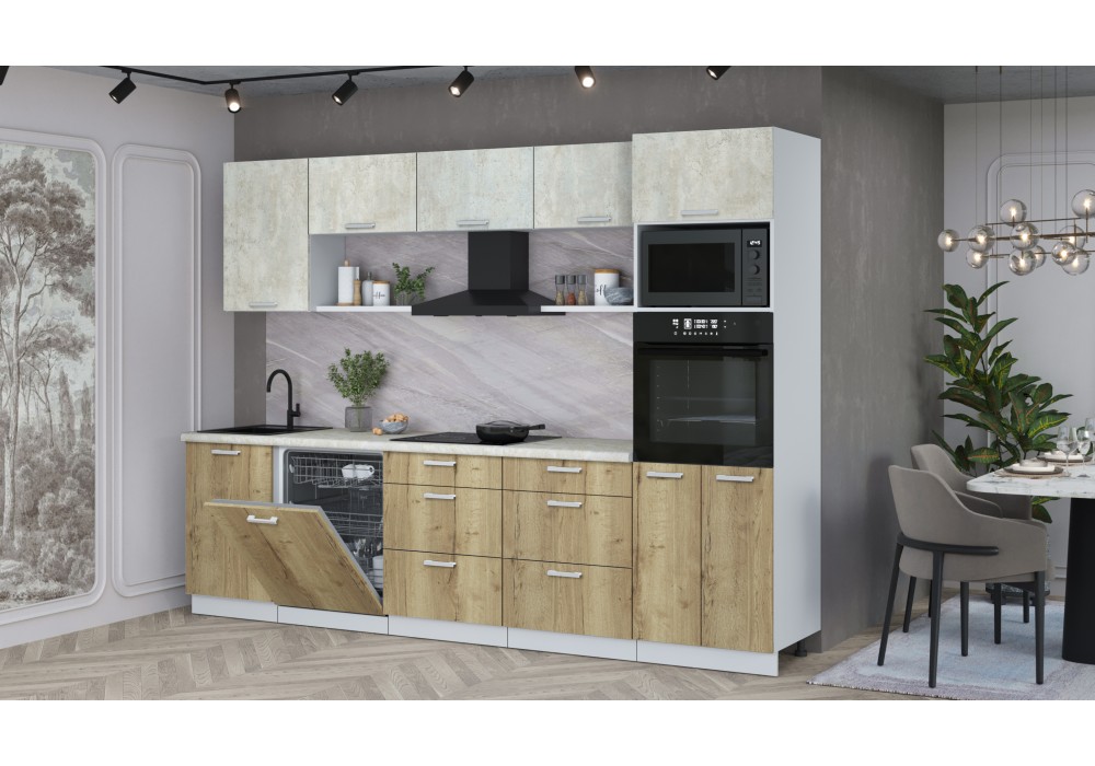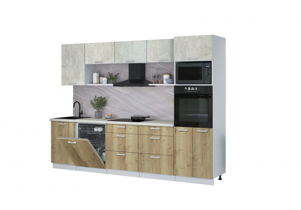 Кухонный гарнитур Мила Лайт 2,9-ПМ1 (Бетон лайт/Дуб золотой/Опал светлый) фабрика Интерлиния