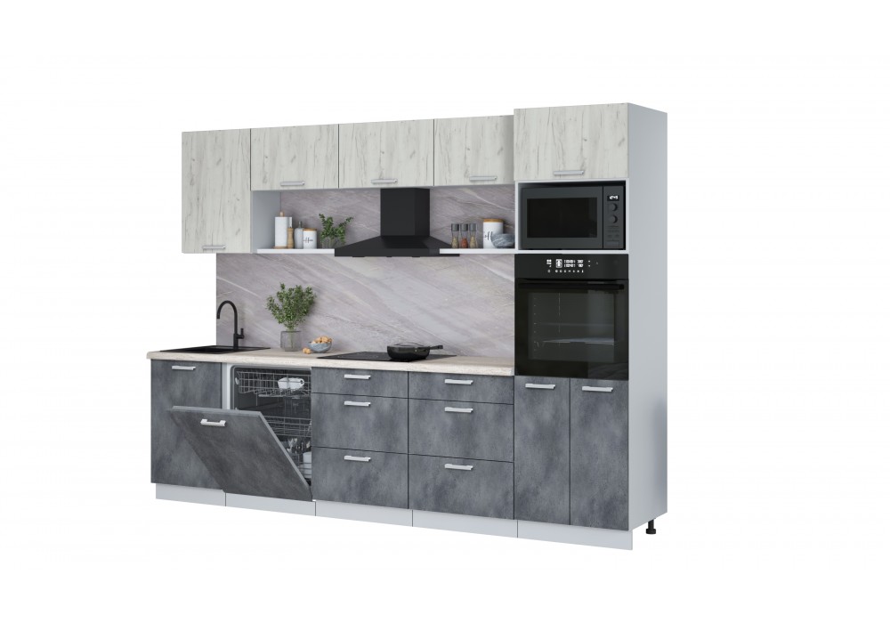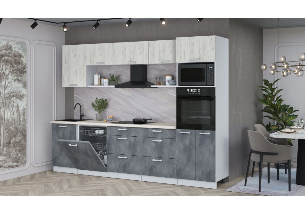 Кухонный гарнитур Мила Лайт 2,9-ПМ1 (Дуб белый/Бетон Портленд/Травертин) фабрика Интерлиния