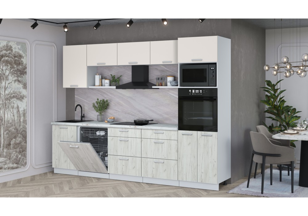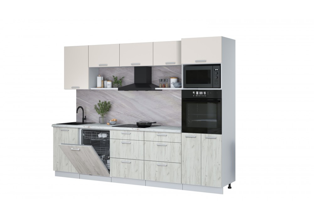 Кухонный гарнитур Мила Лайт 2,9-ПМ1 (Персидский жемчуг/Дуб белый/Серый каспий) фабрика Интерлиния