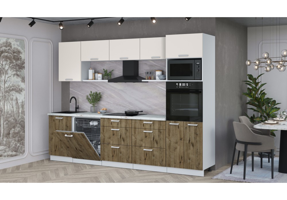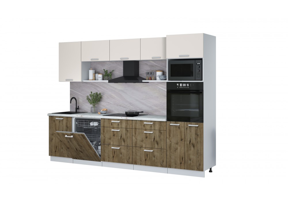 Кухонный гарнитур Мила Лайт 2,9-ПМ1 (Персидский жемчуг/Дуб Веллингтон/Серый каспий) фабрика Интерлиния