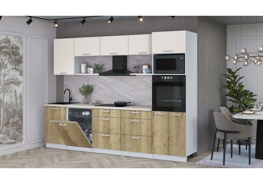 Кухонный гарнитур Мила Лайт 2,9-ПМ1 (Персидский жемчуг/Дуб золотой/Сосна бискайская) фабрика Интерлиния