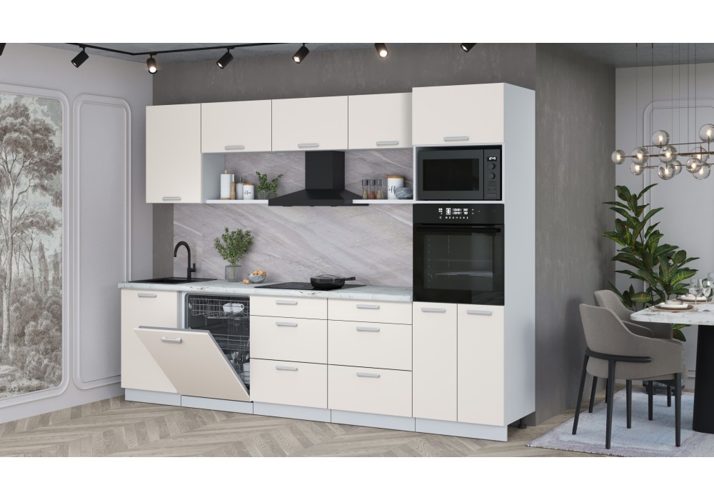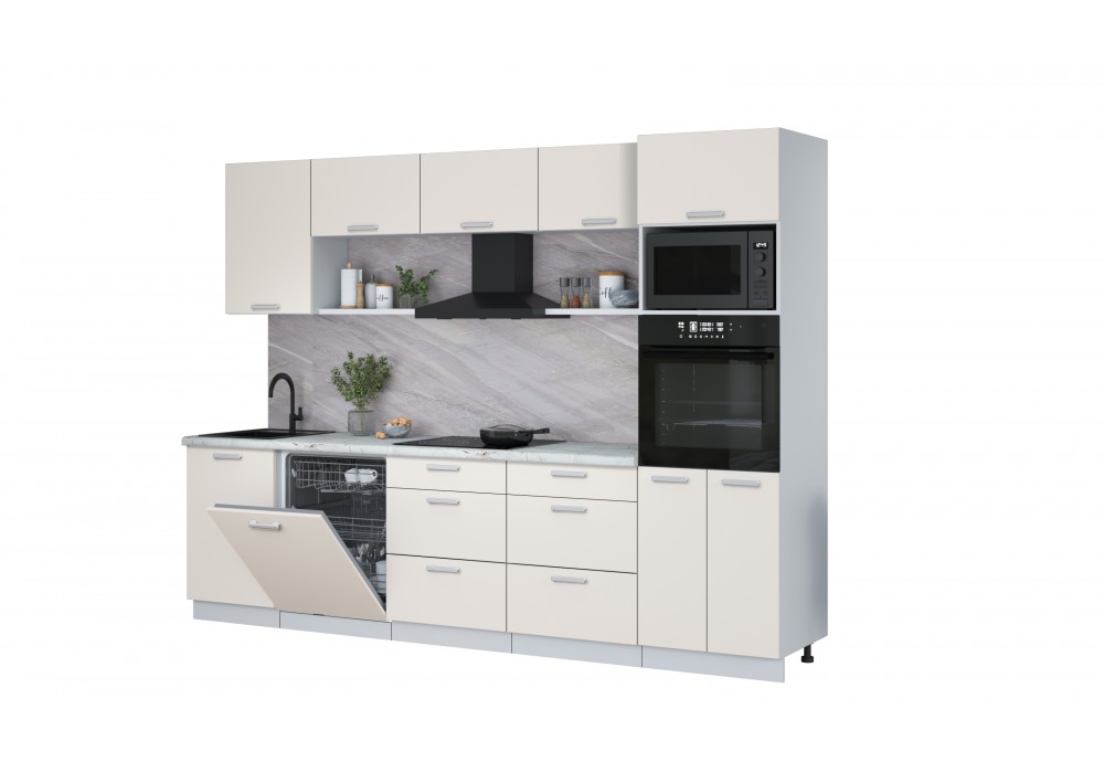 Кухонный гарнитур Мила Лайт 2,9-ПМ1 (Персидский жемчуг/Персидский жемчуг/Серый каспий) фабрика Интерлиния