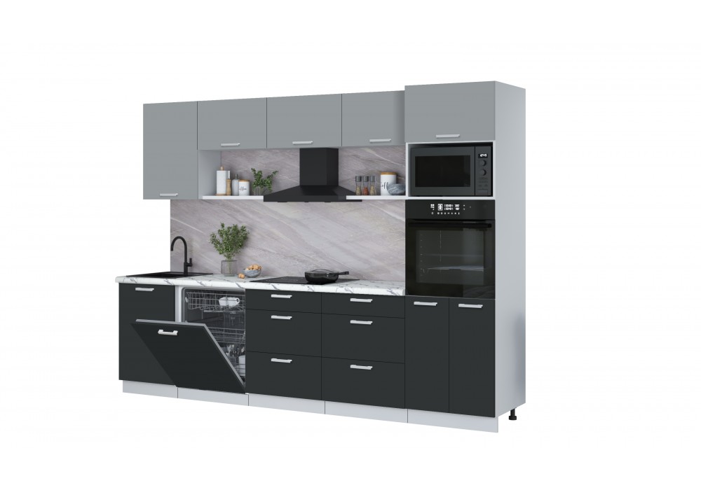 Кухонный гарнитур Мила Лайт 2,9-ПМ1 (Серебро/Антрацит/Гранит белый) фабрика Интерлиния