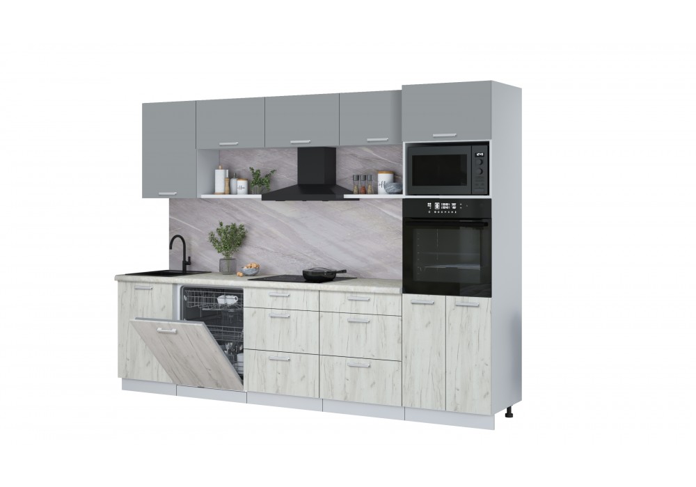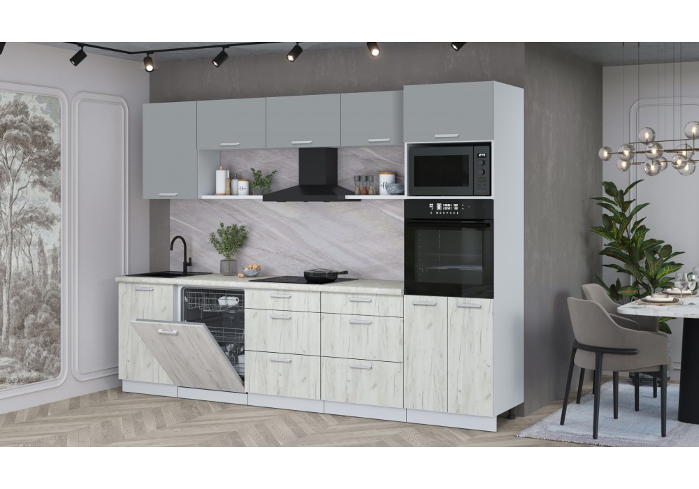 Кухонный гарнитур Мила Лайт 2,9-ПМ1 (Серебро/Дуб белый/Опал светлый) фабрика Интерлиния