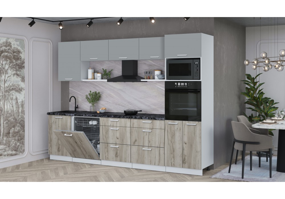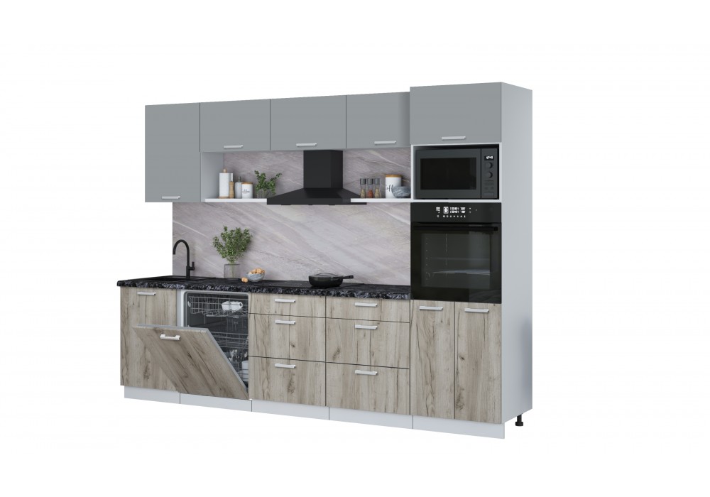 Кухонный гарнитур Мила Лайт 2,9-ПМ1 (Серебро/Дуб серый/Кастилло темный) фабрика Интерлиния