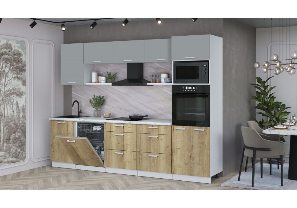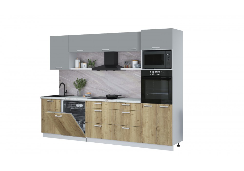Кухонный гарнитур Мила Лайт 2,9-ПМ1 (Серебро/Дуб золотой/Серый каспий) фабрика Интерлиния