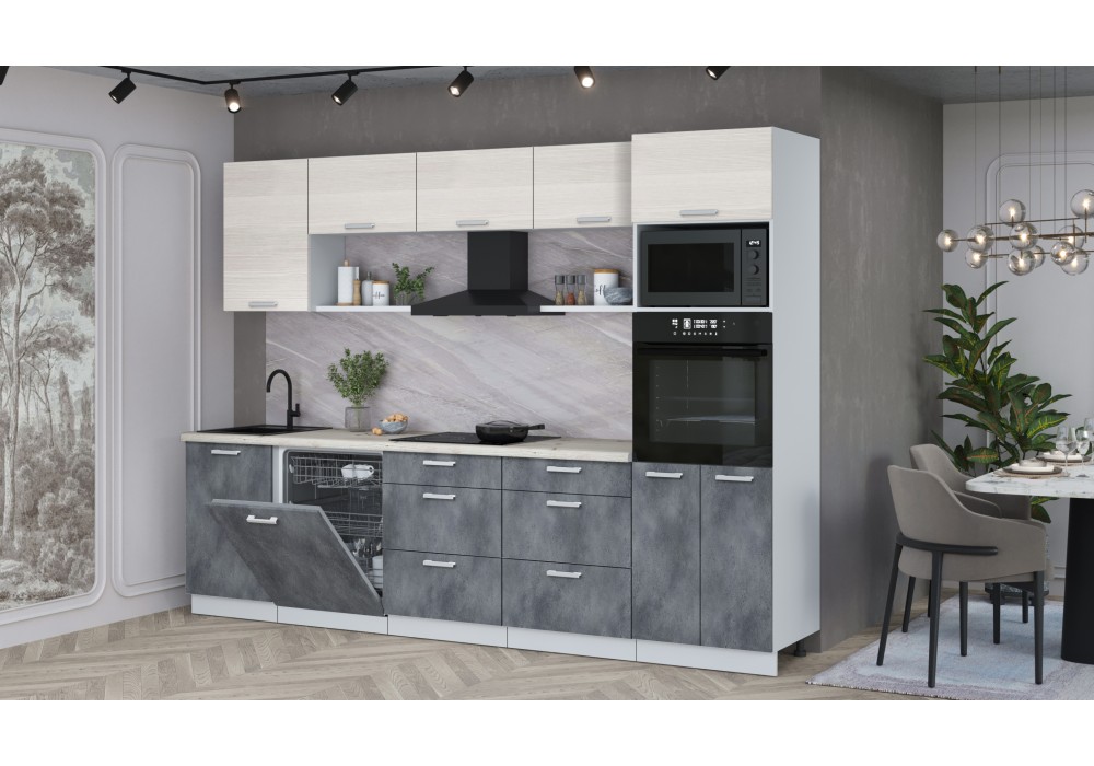 Кухонный гарнитур Мила Лайт 2,9-ПМ1 (Вудлайн кремовый/Бетон Портленд/Сосна бискайская) фабрика Интерлиния