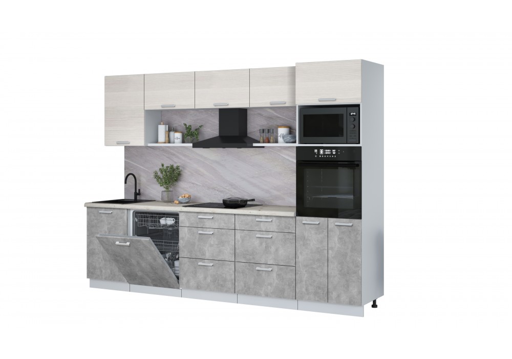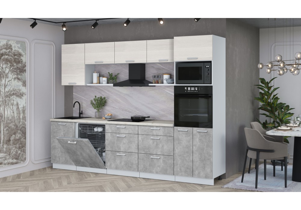 Кухонный гарнитур Мила Лайт 2,9-ПМ1 (Вудлайн кремовый/Бетон/Сосна бискайская) фабрика Интерлиния