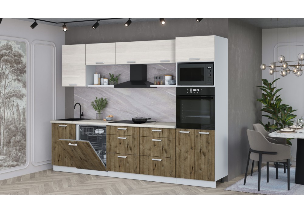 Кухонный гарнитур Мила Лайт 2,9-ПМ1 (Вудлайн кремовый/Дуб Веллингтон/Сосна бискайская) фабрика Интерлиния