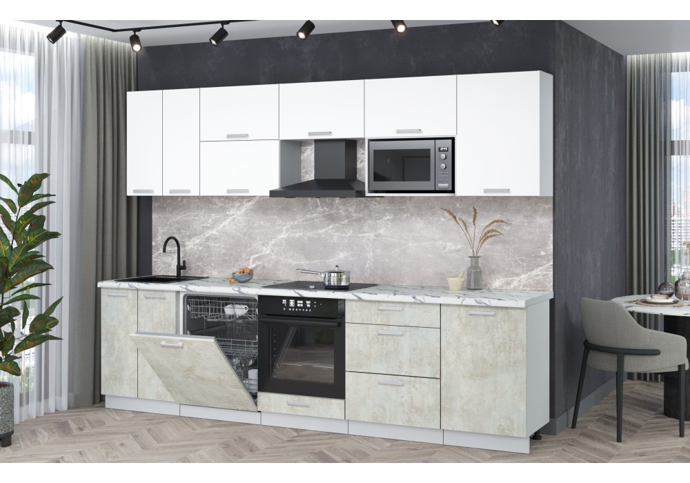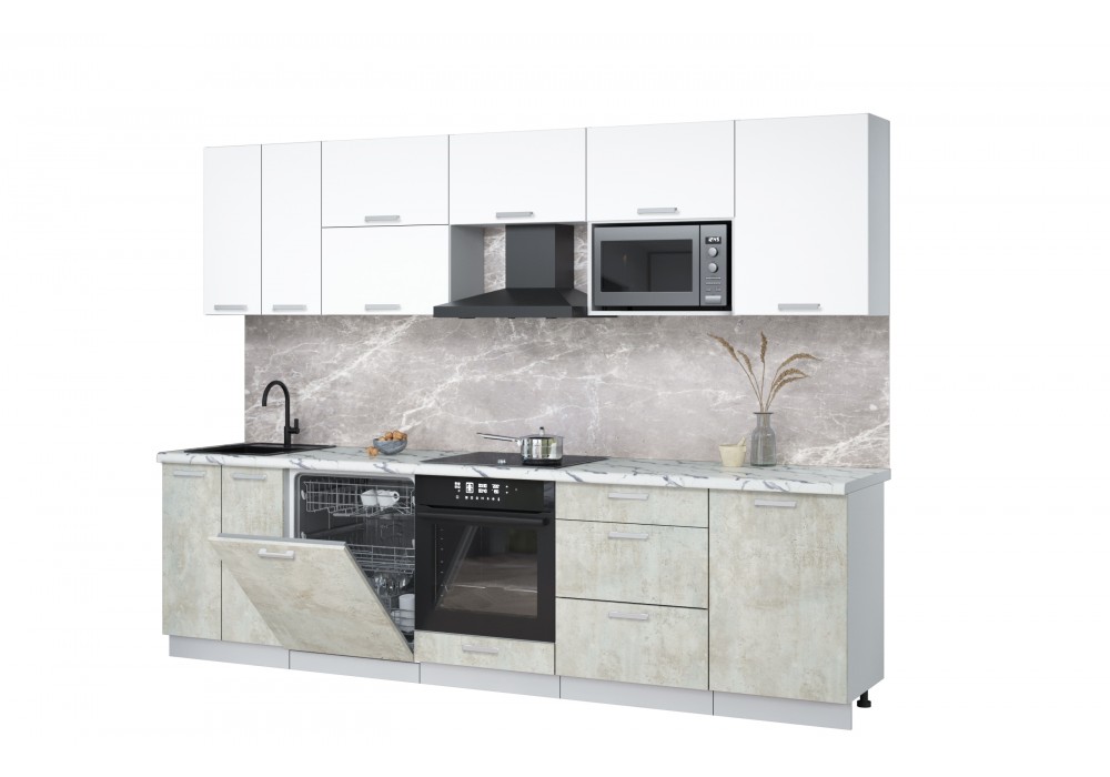 Кухонный гарнитур Мила Лайт 2,9-ПМ2 (Белый Платинум/Бетон лайт/Гранит белый) фабрика Интерлиния
