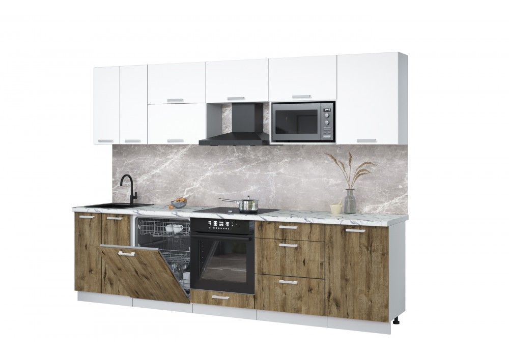 Кухонный гарнитур Мила Лайт 2,9-ПМ2 (Белый Платинум/Дуб веллингтон/Гранит белый) фабрика Интерлиния
