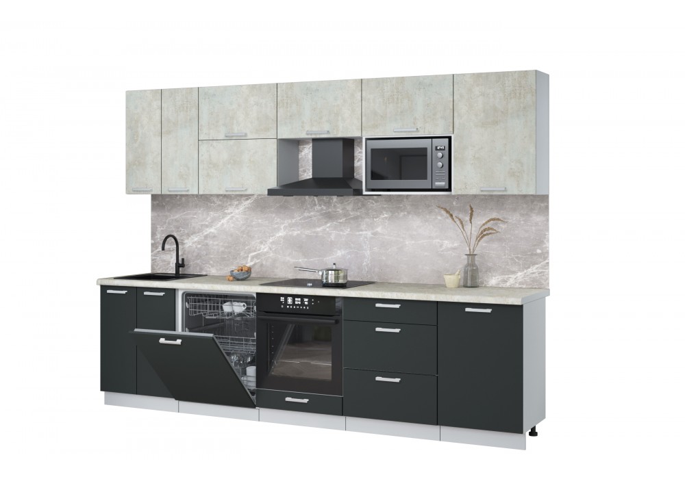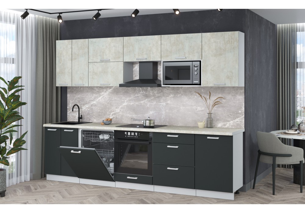 Кухонный гарнитур Мила Лайт 2,9-ПМ2 (Бетон лайт/Антрацит/Опал светлый) фабрика Интерлиния