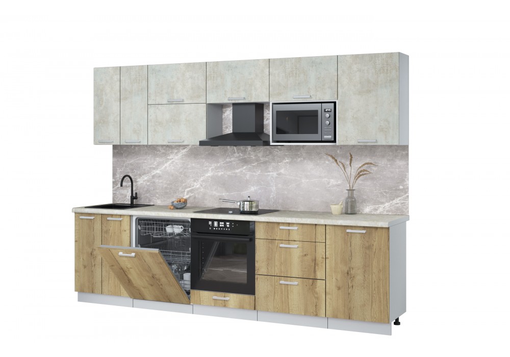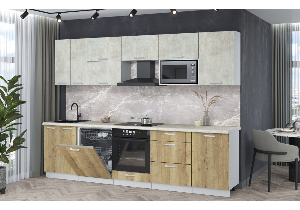 Кухонный гарнитур Мила Лайт 2,9-ПМ2 (Бетон лайт/Дуб золотой/Опал светлый) фабрика Интерлиния