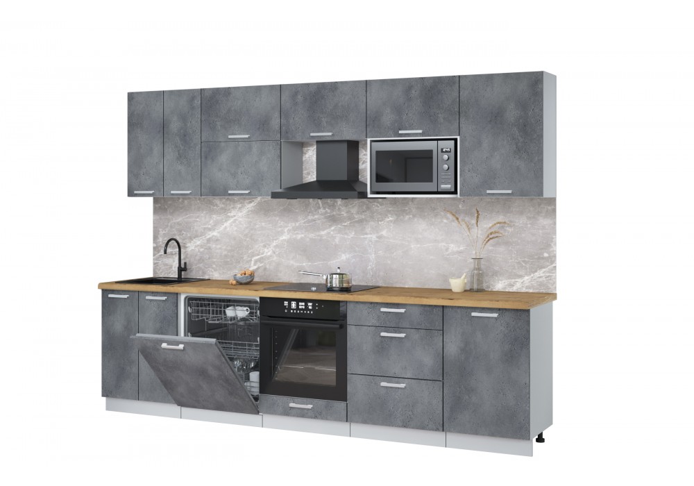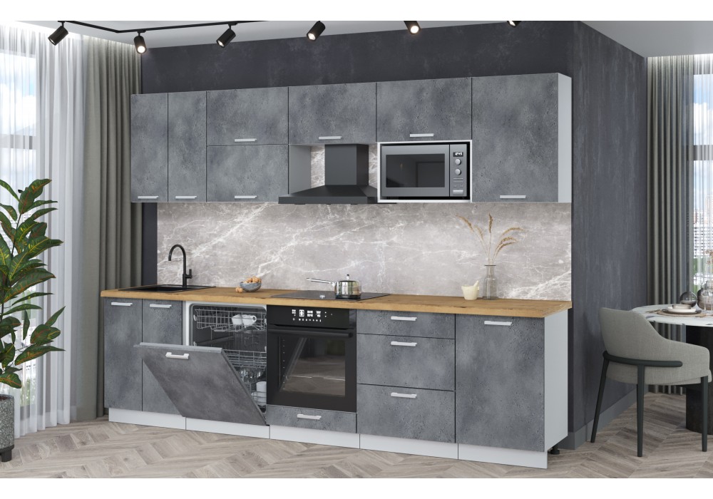 Кухонный гарнитур Мила Лайт 2,9-ПМ2 (Бетон портленд/Бетон портленд/Дуб бунратти) фабрика Интерлиния