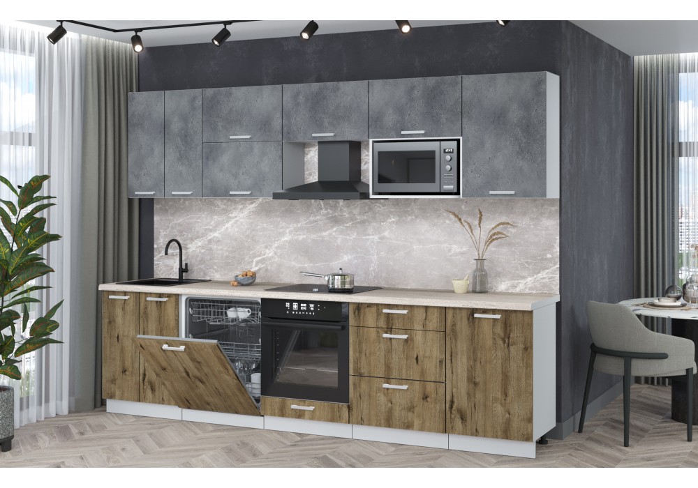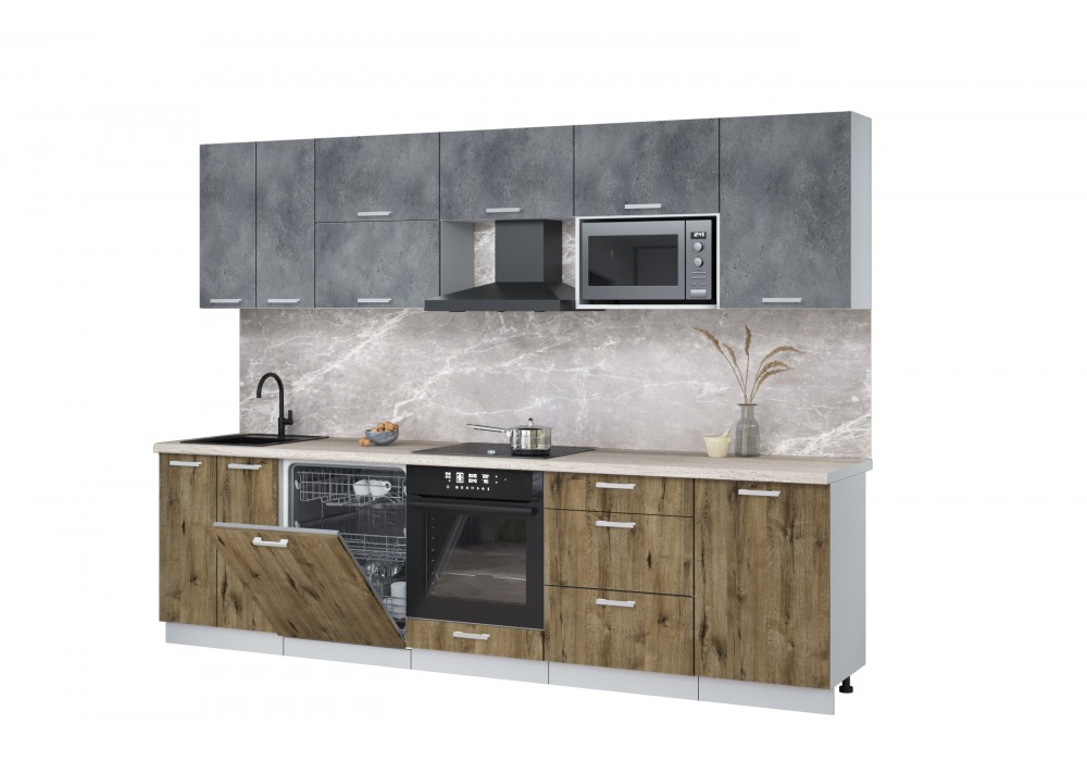 Кухонный гарнитур Мила Лайт 2,9-ПМ2 (Бетон портленд/Дуб веллингтон/Травертин) фабрика Интерлиния