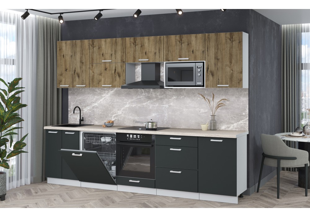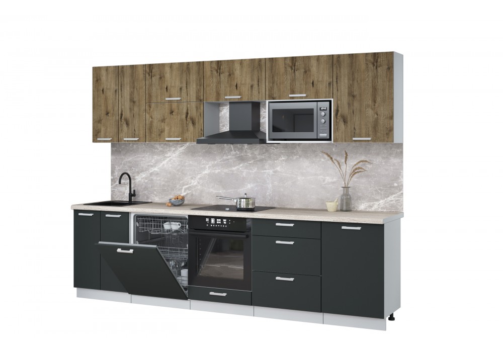 Кухонный гарнитур Мила Лайт 2,9-ПМ2 (Дуб веллингтон/Антрацит/Травертин) фабрика Интерлиния