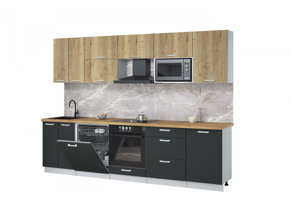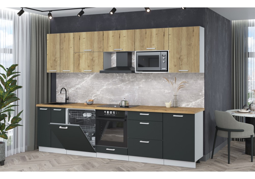 Кухонный гарнитур Мила Лайт 2,9-ПМ2 (Дуб золотой/Антрацит/Дуб бунратти) фабрика Интерлиния