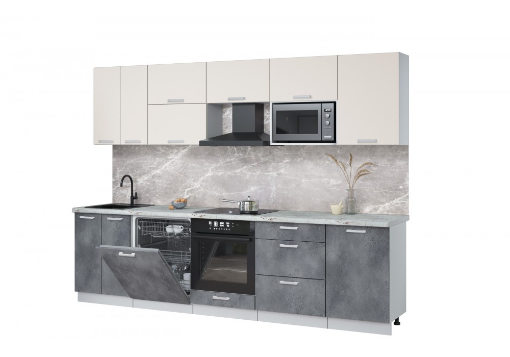Кухонный гарнитур Мила Лайт 2,9-ПМ2 (Персидский жемчуг/Бетон портленд/Серый каспий) фабрика Интерлиния