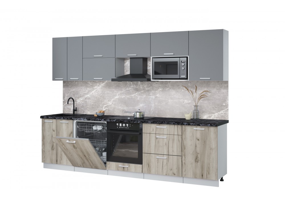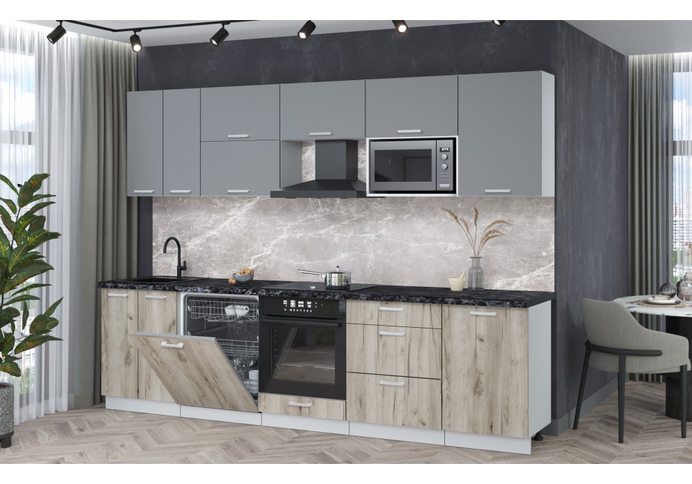 Кухонный гарнитур Мила Лайт 2,9-ПМ2 (Серебро/Дуб серый/Кастилло темный) фабрика Интерлиния