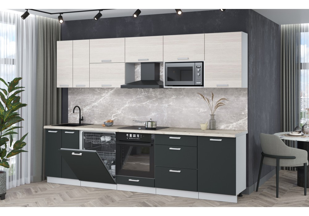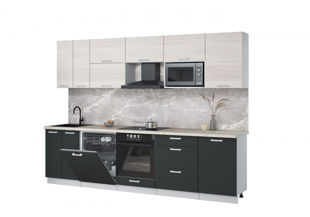 Кухонный гарнитур Мила Лайт 2,9-ПМ2 (Вудлайн кремовый/Антрацит/Сосна бискайская) фабрика Интерлиния