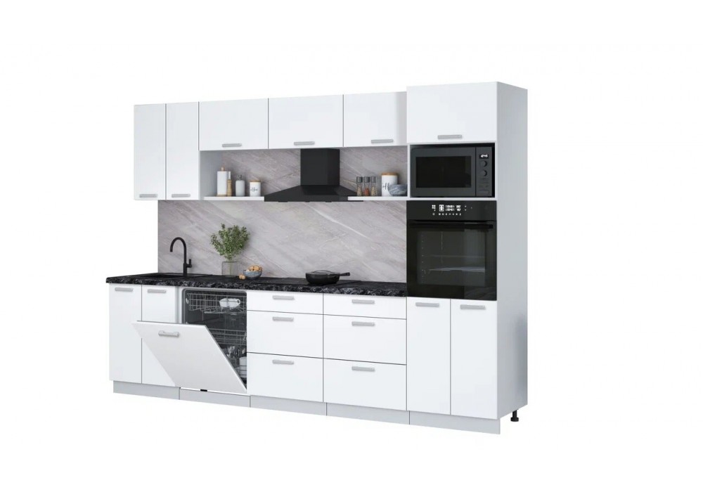 Кухонный гарнитур Мила Лайт 3.0-ПМ1 (Белый Платинум/Белый Платинум/Кастилло темный) фабрика Интерлиния