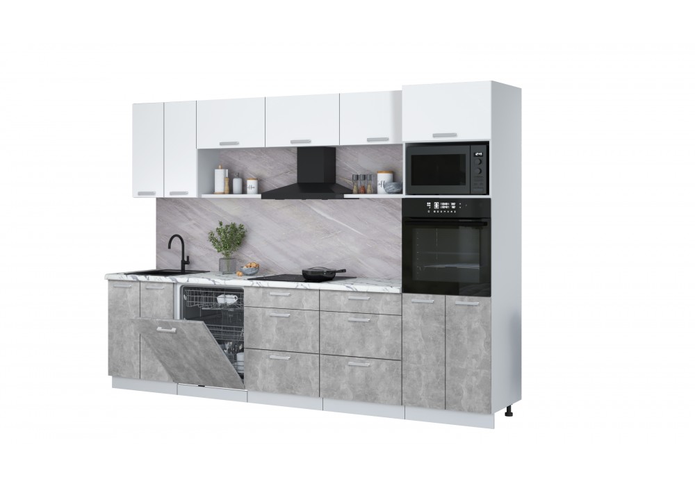 Кухонный гарнитур Мила Лайт 3.0-ПМ1 (Белый Платинум/Бетон/Гранит белый) фабрика Интерлиния