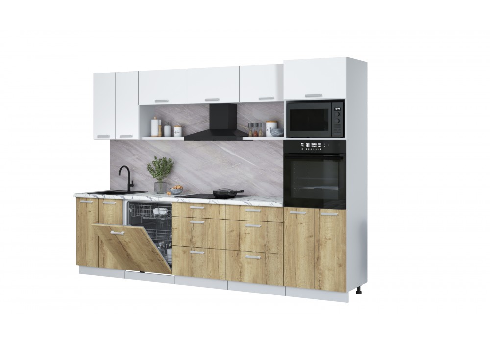 Кухонный гарнитур Мила Лайт 3.0-ПМ1 (Белый Платинум/Дуб золотой/Гранит белый) фабрика Интерлиния