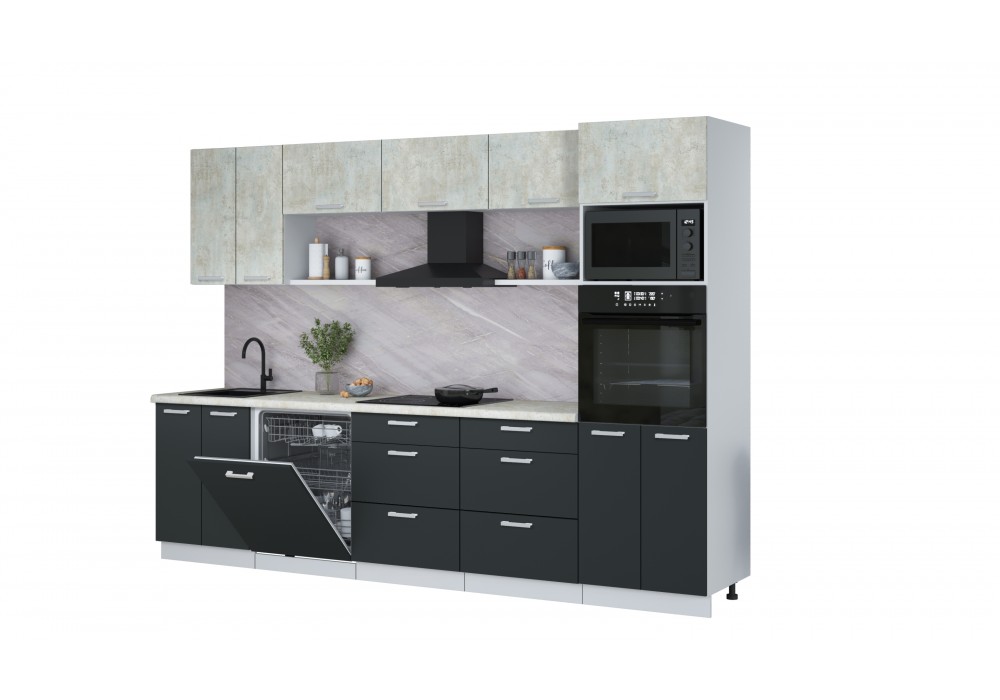 Кухонный гарнитур Мила Лайт 3.0-ПМ1 (Бетон Лайт/Антрацит/Опал светлый) фабрика Интерлиния