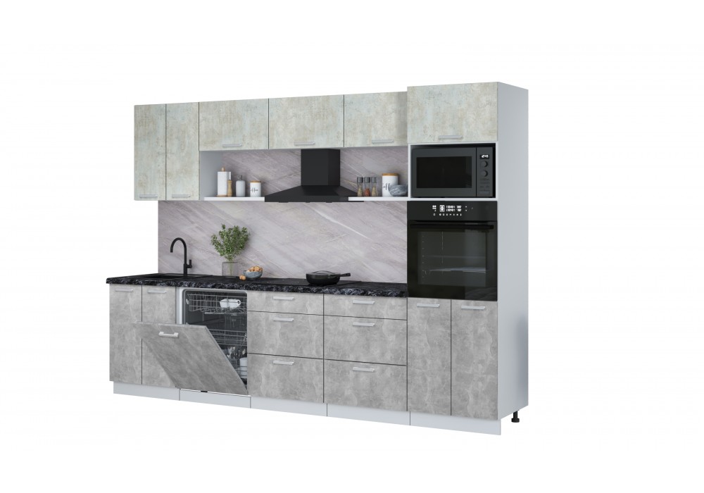 Кухонный гарнитур Мила Лайт 3.0-ПМ1 (Бетон Лайт/Бетон/Кастилло темный) фабрика Интерлиния