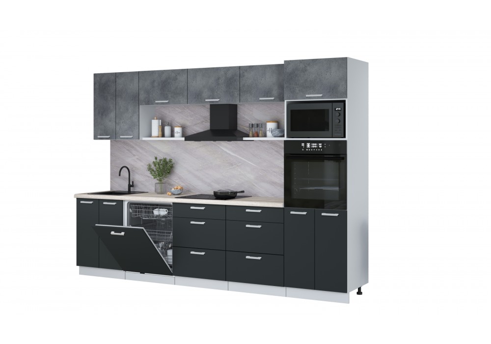 Кухонный гарнитур Мила Лайт 3.0-ПМ1 (Бетон Портленд/Антрацит/Травертин) фабрика Интерлиния