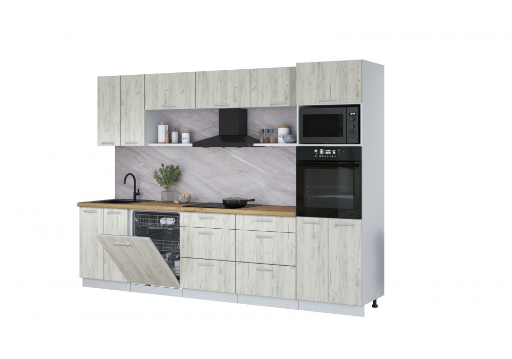 Кухонный гарнитур Мила Лайт 3.0-ПМ1 (Дуб Белый/Дуб Белый/Дуб бунратти) фабрика Интерлиния