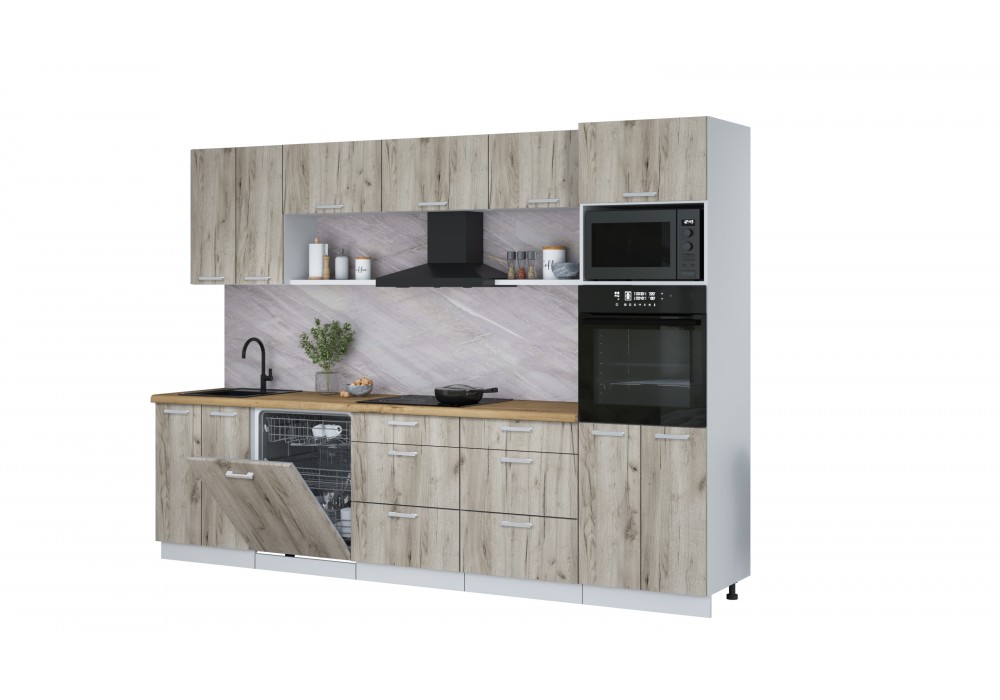 Кухонный гарнитур Мила Лайт 3.0-ПМ1 (Дуб Серый/Дуб Серый/Дуб бунратти) фабрика Интерлиния
