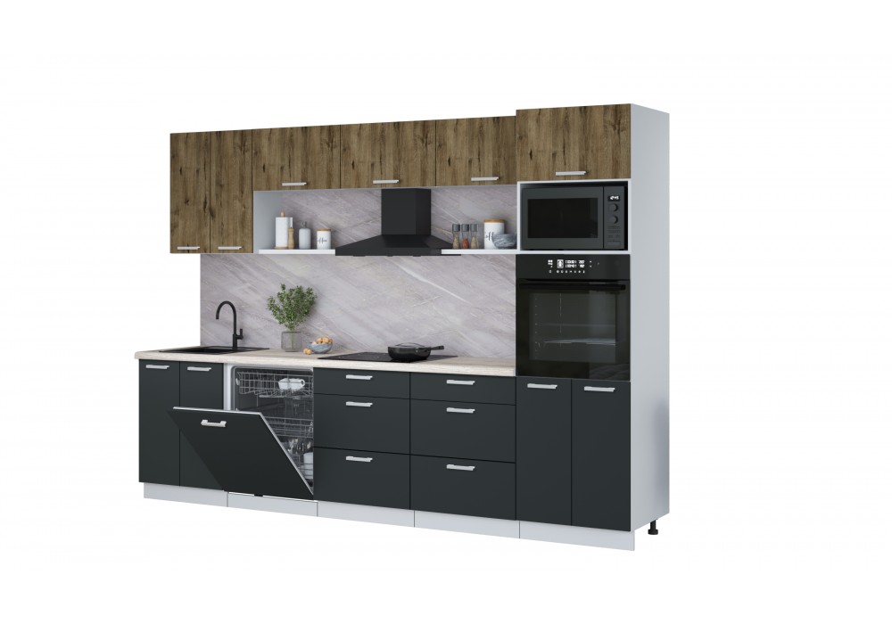 Кухонный гарнитур Мила Лайт 3.0-ПМ1 (Дуб Веллингтон/Антрацит/Травертин) фабрика Интерлиния