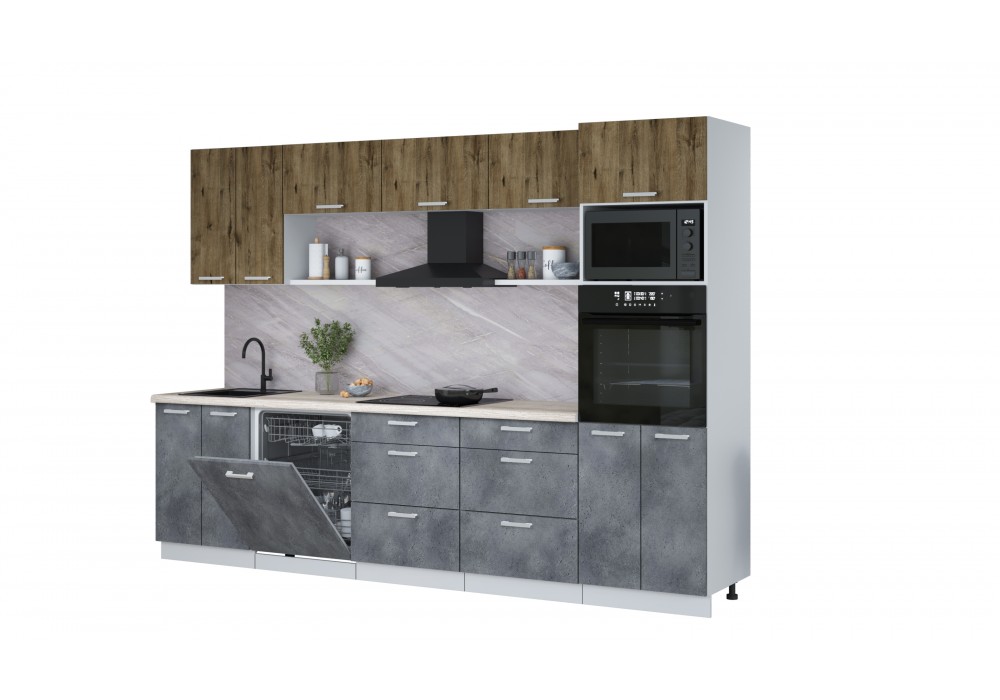 Кухонный гарнитур Мила Лайт 3.0-ПМ1 (Дуб Веллингтон/Бетон Портленд/Травертин) фабрика Интерлиния