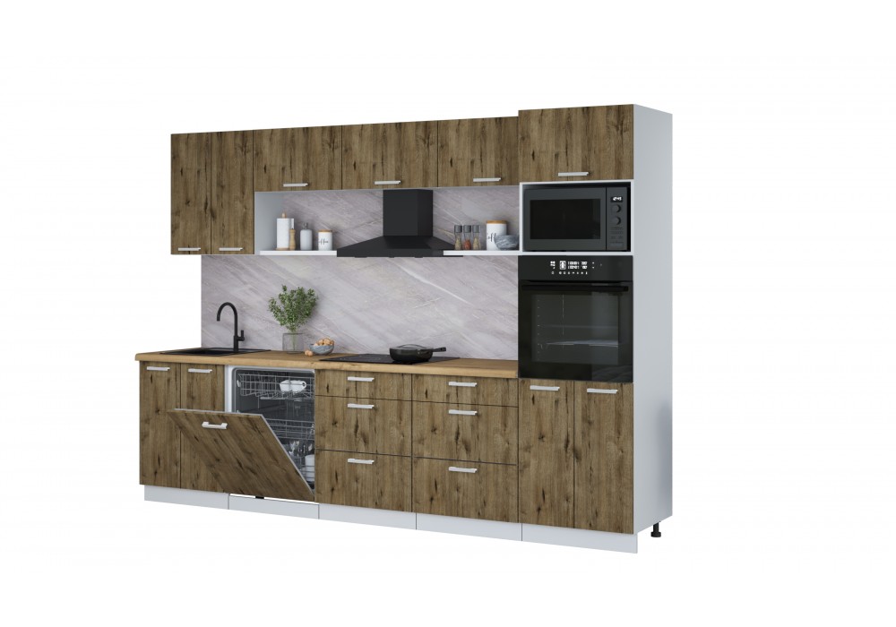 Кухонный гарнитур Мила Лайт 3.0-ПМ1 (Дуб Веллингтон/Дуб Веллингтон/Дуб бунратти) фабрика Интерлиния
