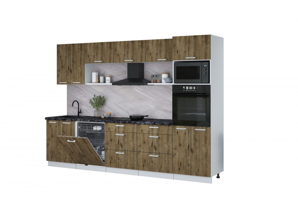 Кухонный гарнитур Мила Лайт 3.0-ПМ1 (Дуб Веллингтон/Дуб Веллингтон/Кастилло темный) фабрика Интерлиния