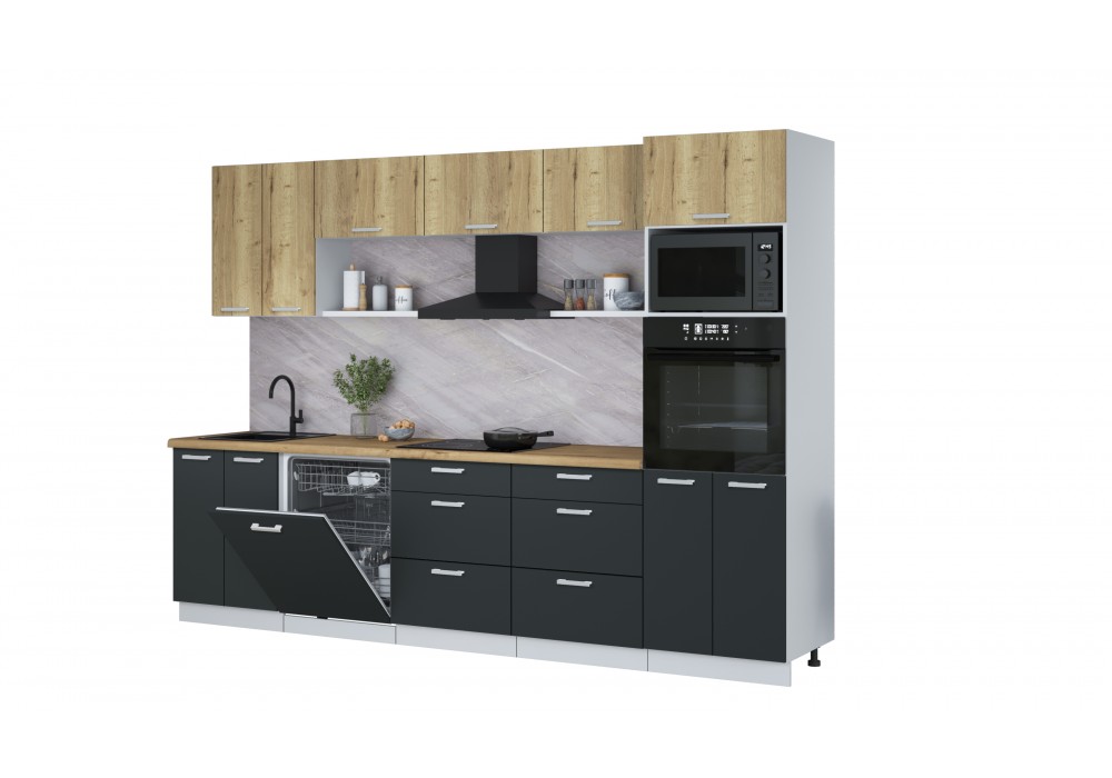Кухонный гарнитур Мила Лайт 3.0-ПМ1 (Дуб золотой/Антрацит/Дуб бунратти) фабрика Интерлиния