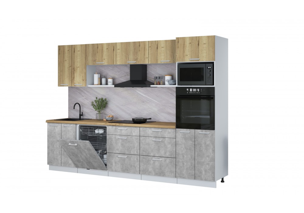Кухонный гарнитур Мила Лайт 3.0-ПМ1 (Дуб золотой/Бетон/Дуб бунратти) фабрика Интерлиния