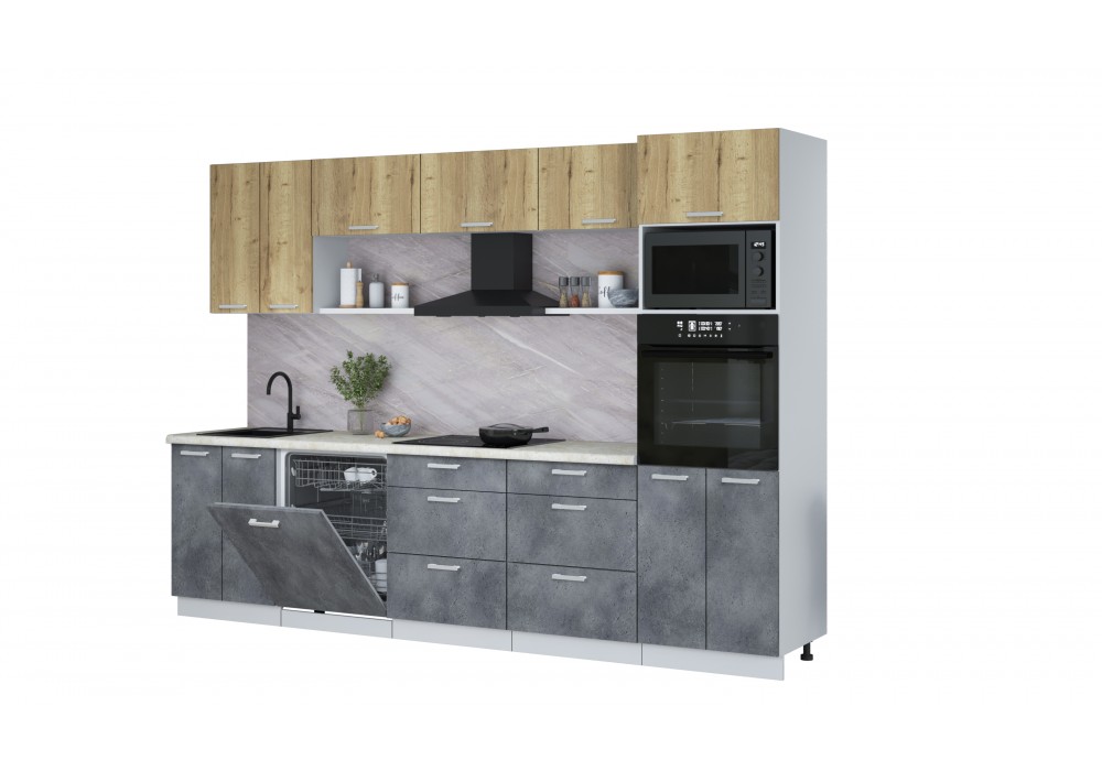 Кухонный гарнитур Мила Лайт 3.0-ПМ1 (Дуб золотой/Бетон Портленд/Опал светлый) фабрика Интерлиния