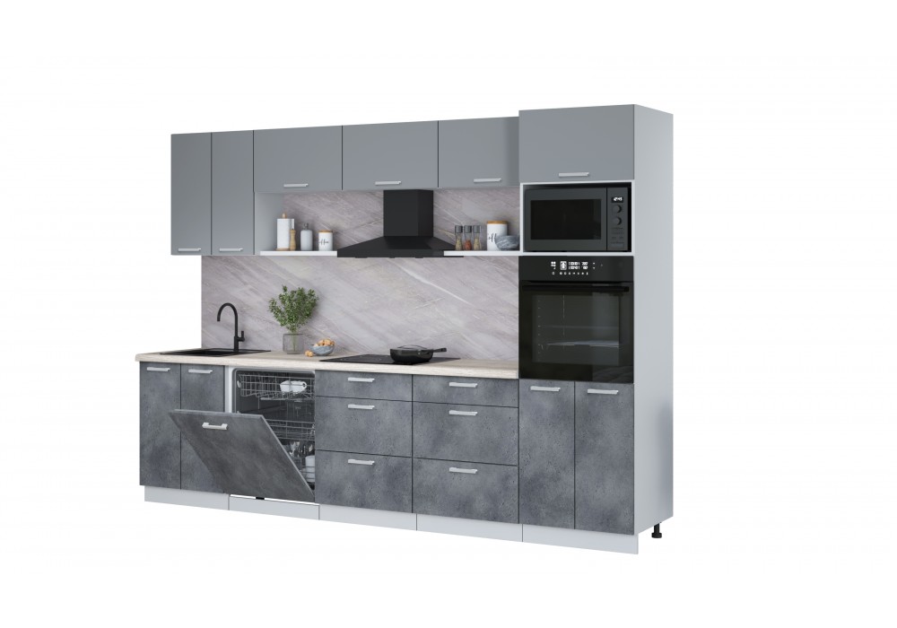 Кухонный гарнитур Мила Лайт 3.0-ПМ1 (Серебро /Бетон Портленд/Травертин) фабрика Интерлиния
