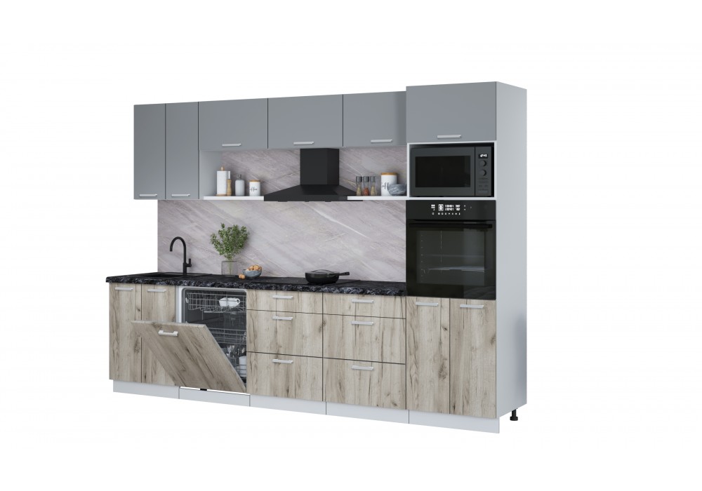 Кухонный гарнитур Мила Лайт 3.0-ПМ1 (Серебро/Дуб серый/Кастилло темный) фабрика Интерлиния